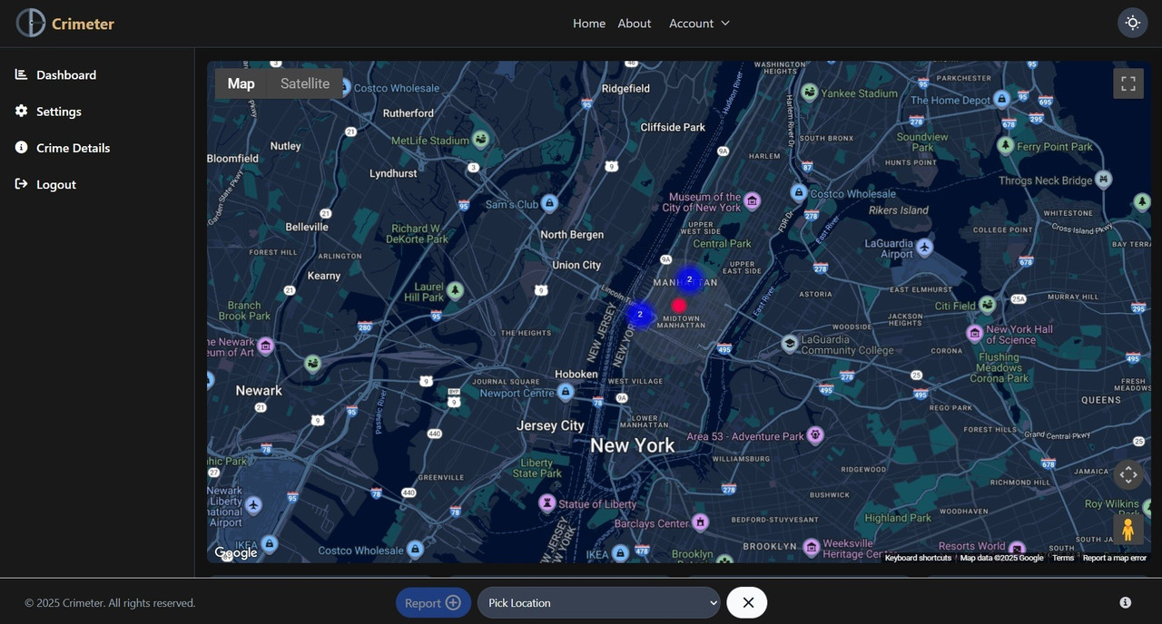 Crimeter is an online platform that allows users to report crimes and view real-time crime data in their area.